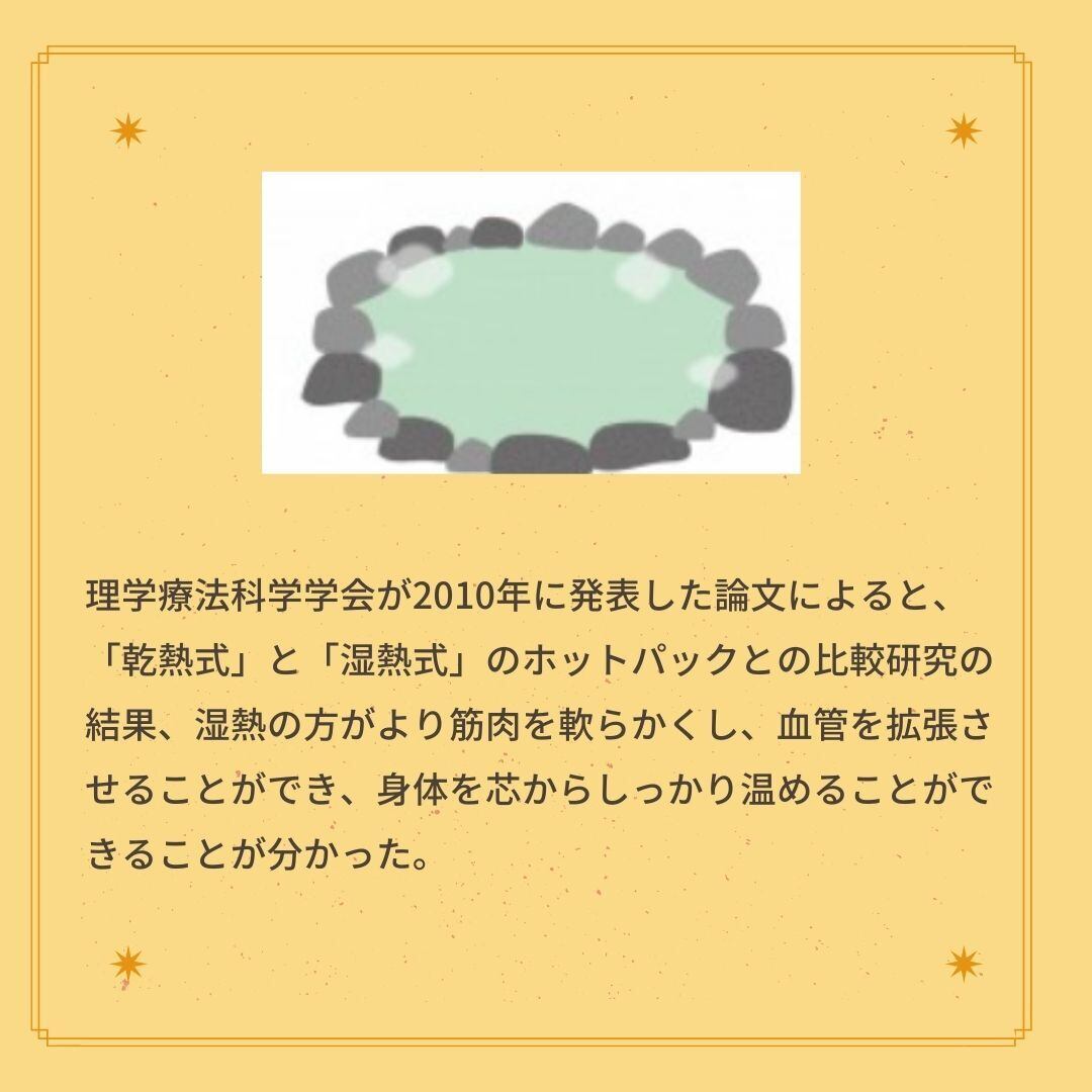 *理学療法科学学会が2010年に発表した論文によると、「乾熱式」と「湿熱式」のホットパックとの比較研究の結果、湿熱の方がより筋肉を軟らかくし、血管を拡張させることができ、身体を芯からしっかり温めることができることが分かった。 玄米の中の水分が蒸気となって放熱し、体の奥深くまで行き届き芯からじんわり温まります。