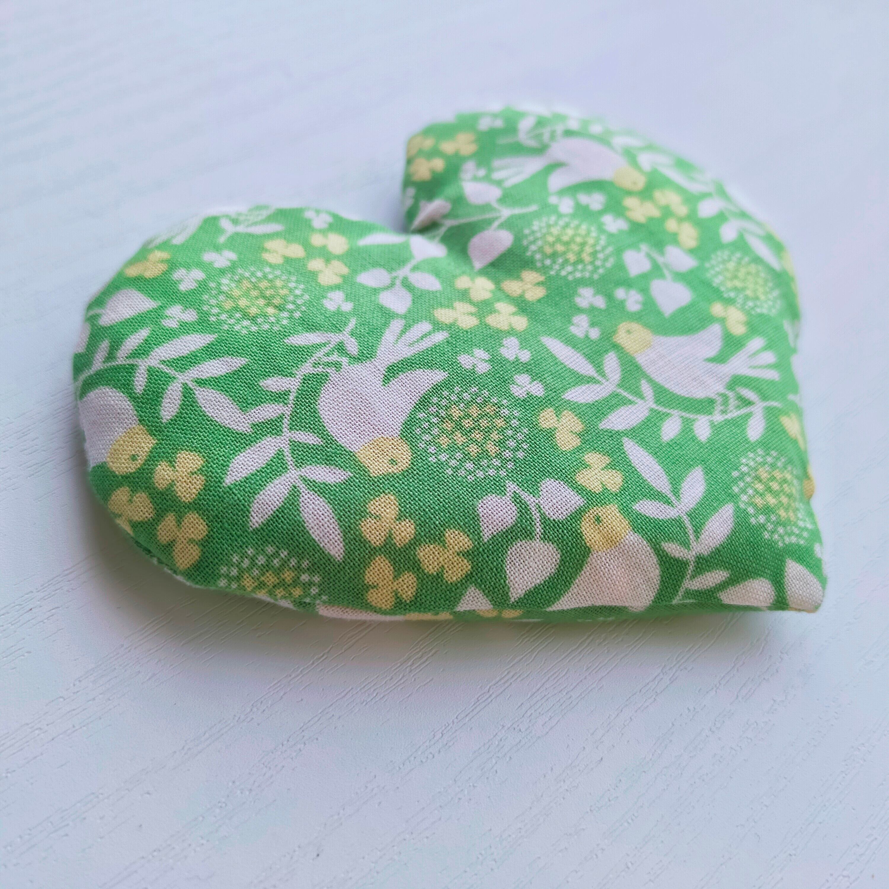 無農薬玄米カイロ【 心を落ち着かせる】ハート型 バード柄 【送料無料】免疫アップ 憂鬱 落ち込み 気の巡り 冷え