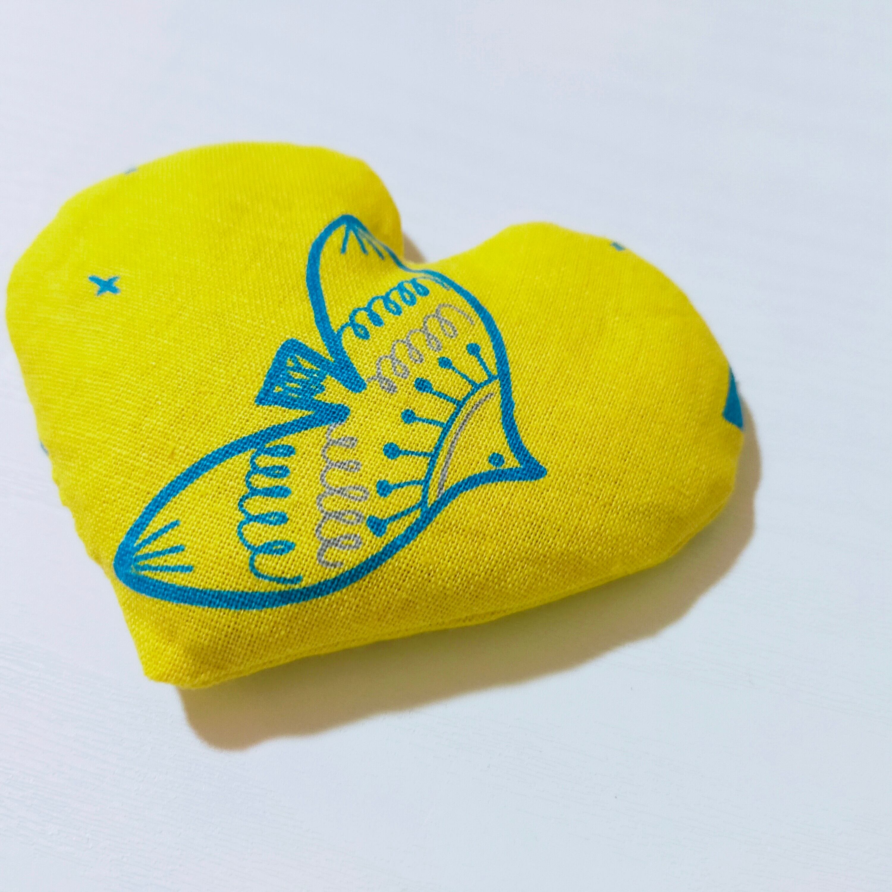 無農薬玄米カイロ【 心を落ち着かせる】ハート型 北欧バード柄 【送料無料】免疫アップ 憂鬱 落ち込み 気の巡り 冷え