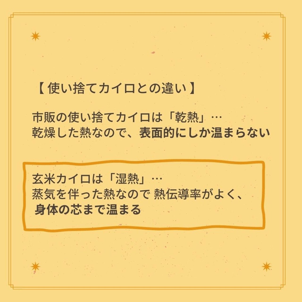 天然素材の玄米カイロは、市販のカイロに比べ、玄米の中の水分が蒸気となって放熱→芯からじんわり温まります。